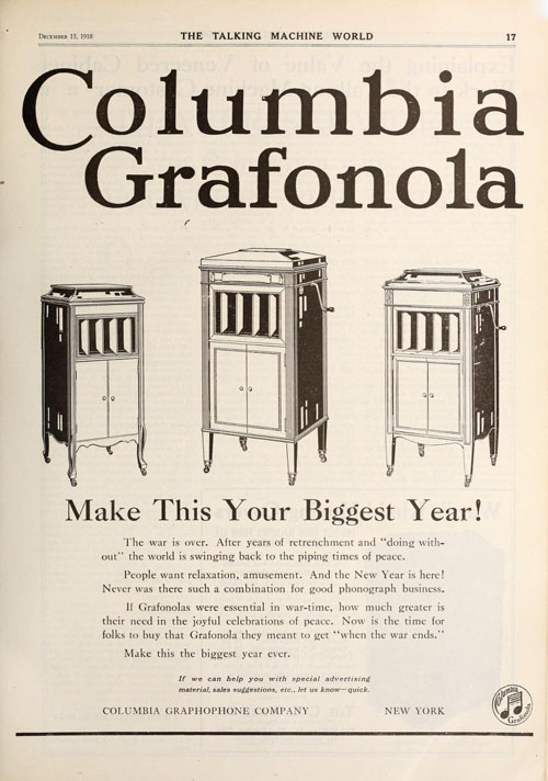 The war is over. Make 1919 "Your Biggest Year!" The Talking Machine World, December 1918