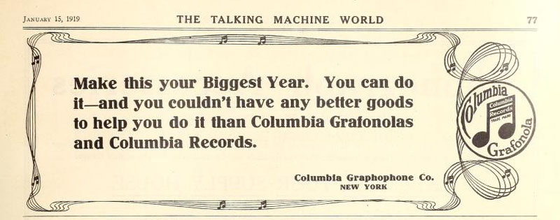 Columbia Records, The Talking Machine World, January 1919