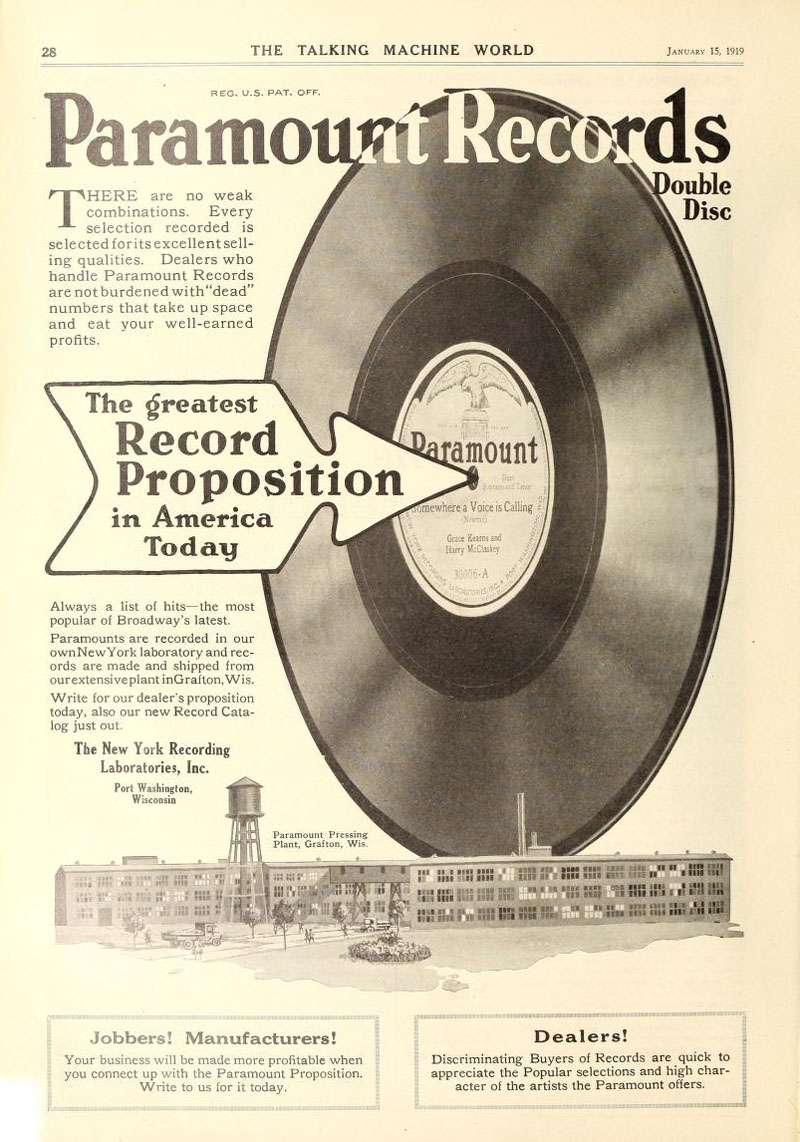 Paramount Records, The Talking Machine World, January 1919