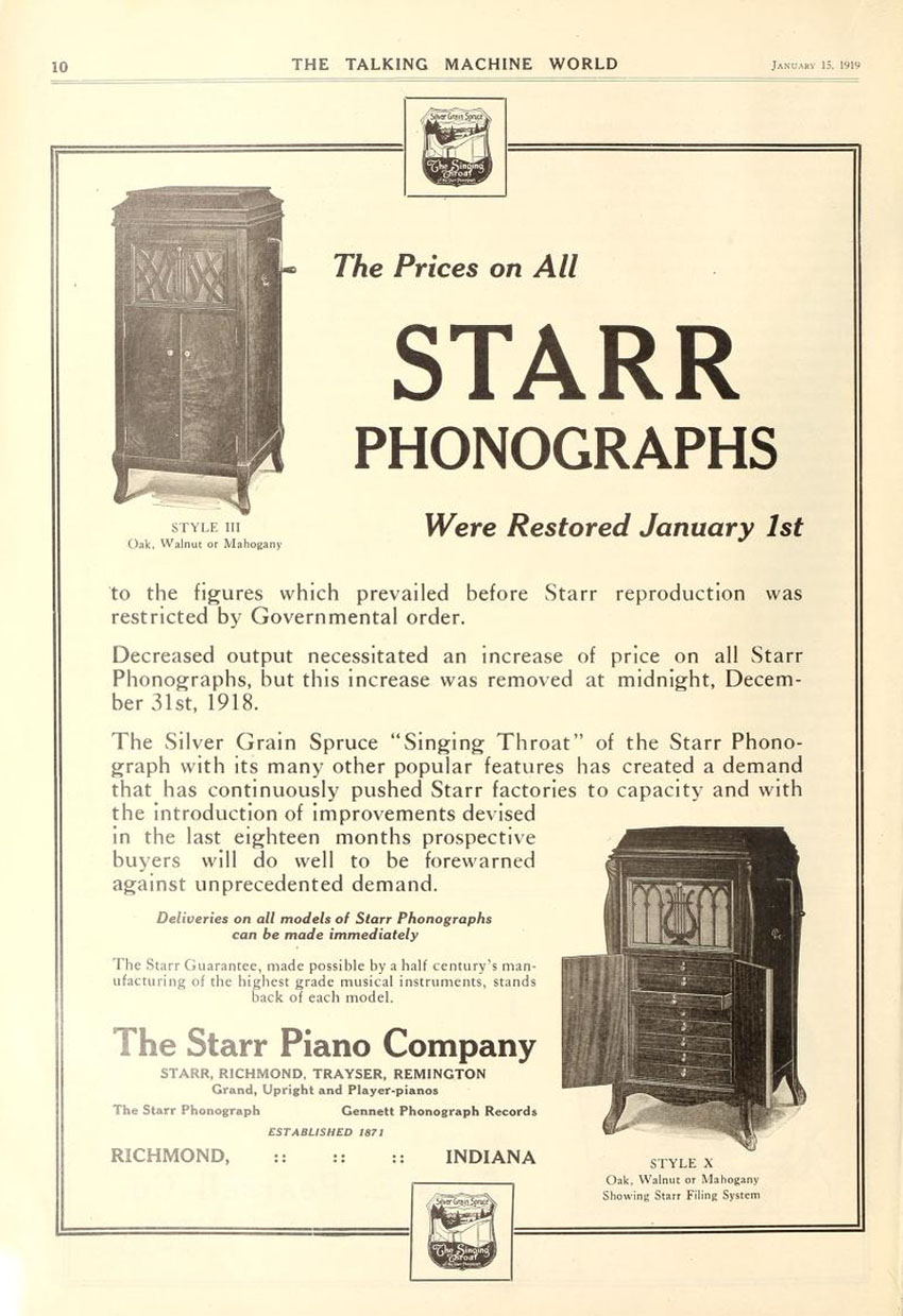 Starr Phonograph, The Talking Machine World, January 1919