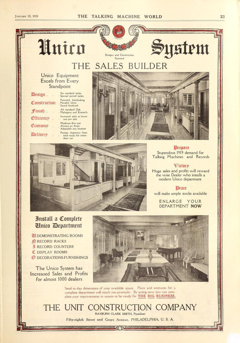 Unico Demonstrating Rooms, The Talking Machine World, January 1919
