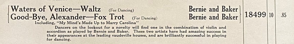 Good-Bye, Alexander -- Fox Trot Including, "My Mind's Made Up to Marry Carolina" - Victor Number 18499-B