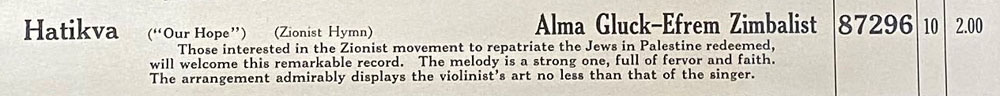 Hatikva by Alma Gluck and Efrem Zimbalist