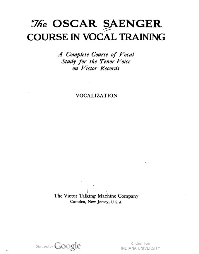 Title Page and Table of Contents for The Oscar Saenger Course in Vocal Training