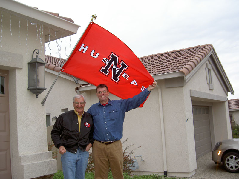 CA 49er proudly flys the Lincoln, NE Husker flag - 2005