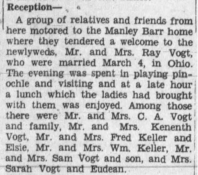 Reception for Mr. and Mrs. Ray Vogt, March 18, 1936 Howard County Herald