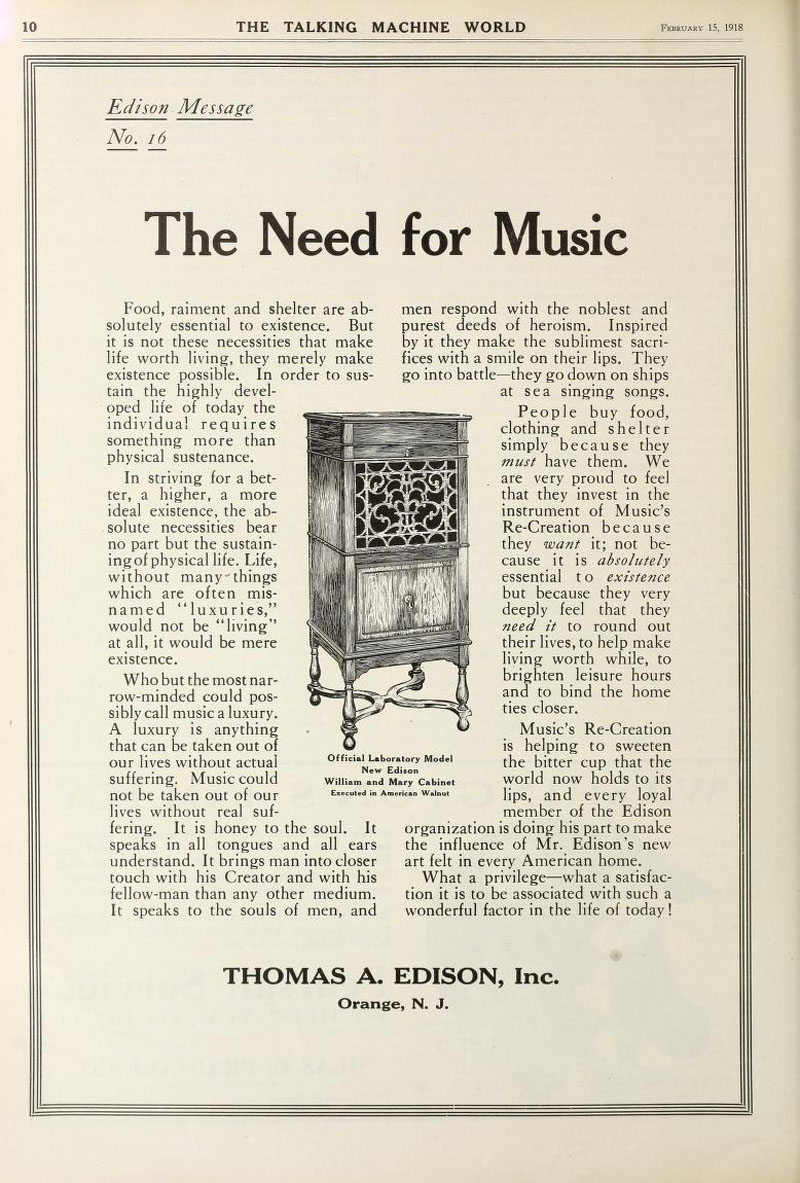 Edison Message No. 16, The Talking Machine World, February 15, 1918