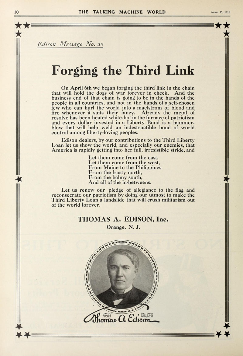 Edison Message No. 20, The Talking Machine World, April 15, 1918