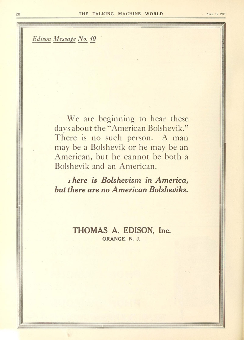 Edison Message No. 40, The Talking Machine World, April 15, 1919