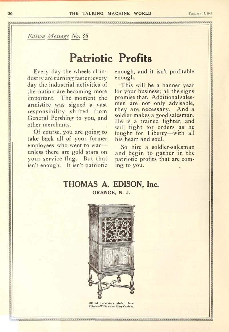 Edison Message No. 35, The Talking Machine World, February 15, 1919