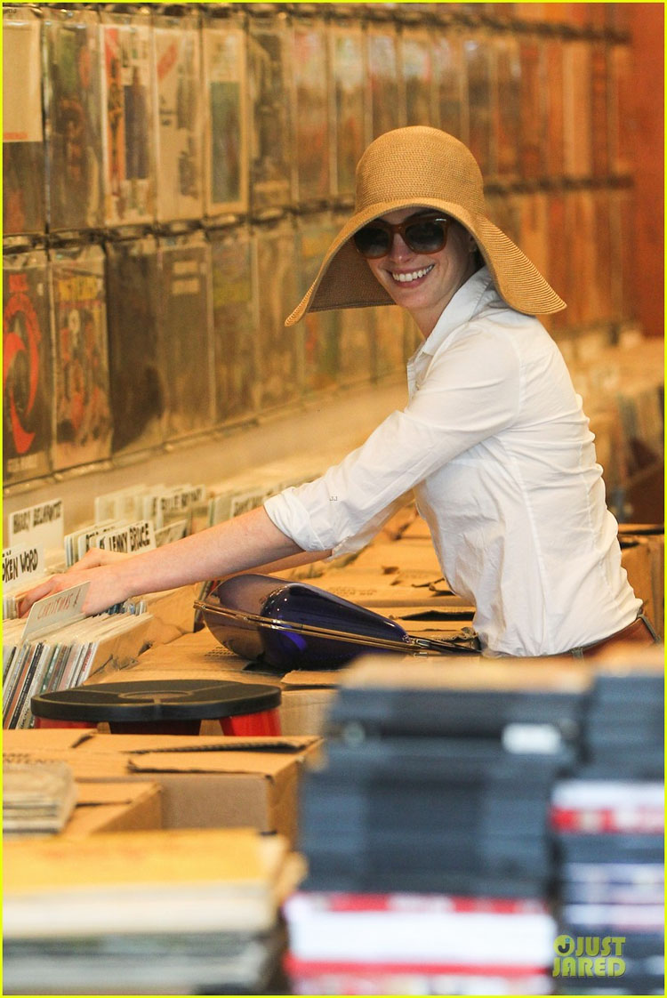 Another phonograph connection comes from a picture of Hathaway shopping for vinyl records at Atomic Records in Burbank (courtesy of Just Jared, Inc.)