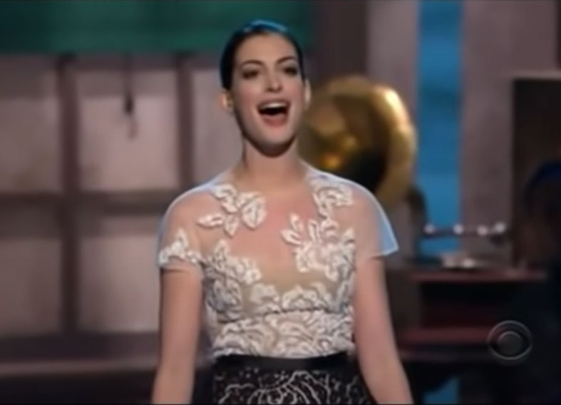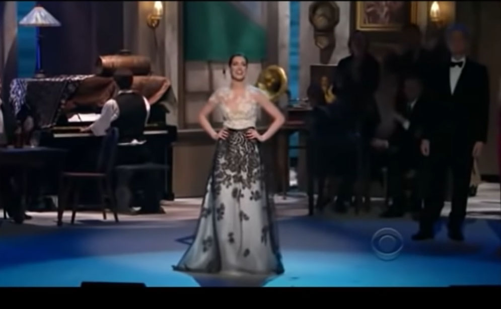 Anne Hathaway sings "She's Me Pal" in a tribute to Meryl Streep during the 34th Annual Kennedy Centre Honors.