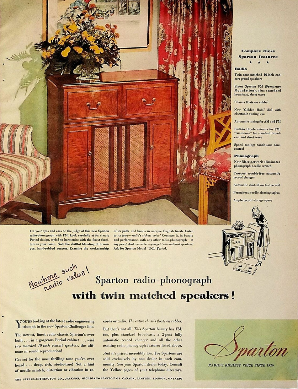 Spartan Radio-Phonograph with twin-matched speakers, 1947