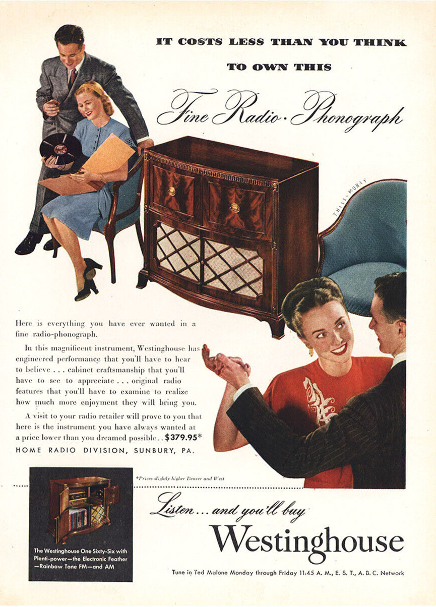 "You don't need a fortune to own this Fine Radio-Phonograph" Westinghouse Radio-Phonograph, 1947