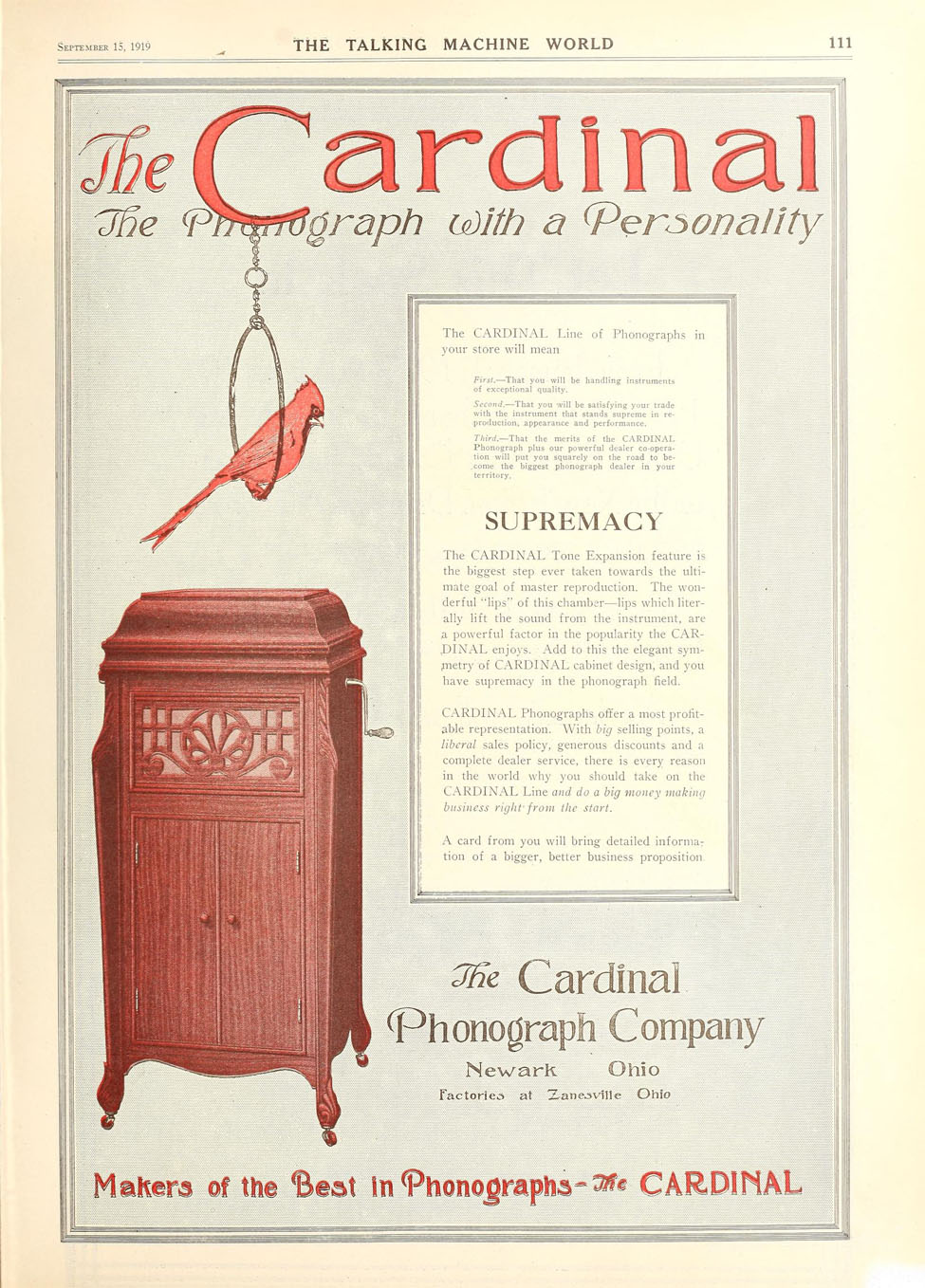 Phonograph with a Personality" - Cardinal 1919 |