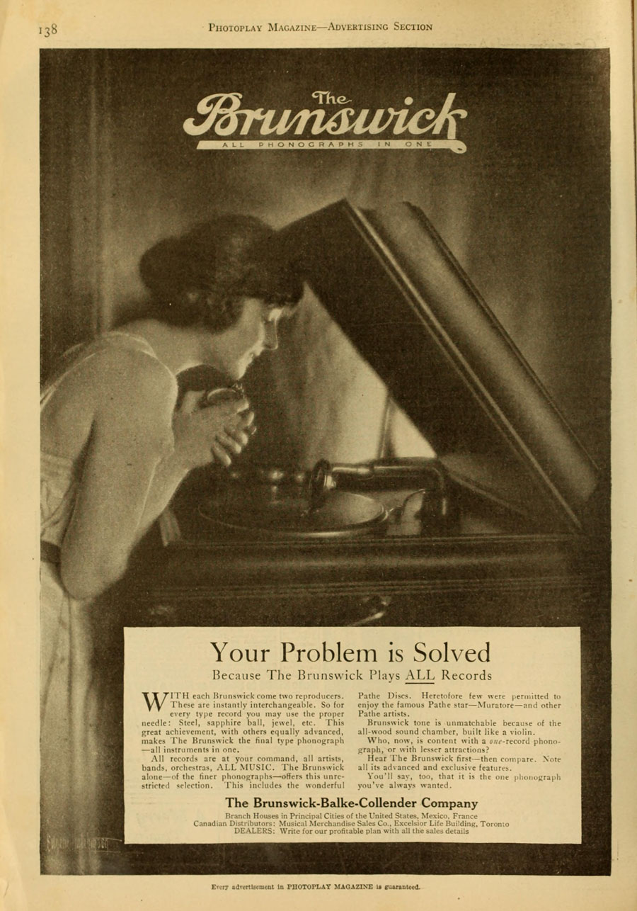 Phonographs in One" - Brunswick 1918 |