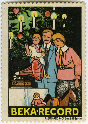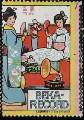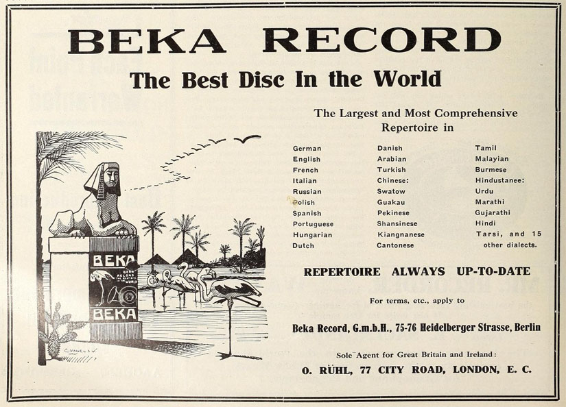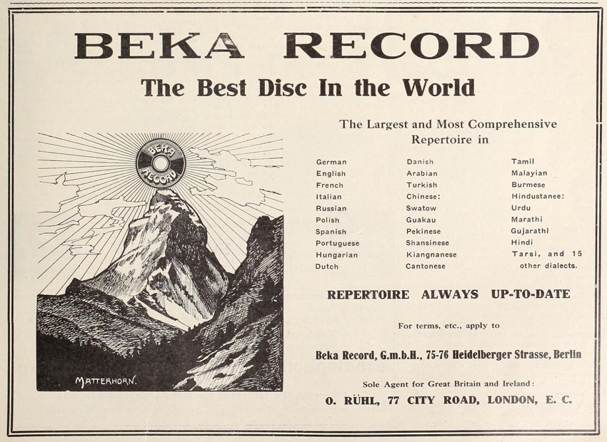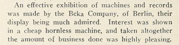their Bekophone, an open horned talking machine.