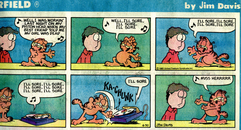 Ka-Chunk - Remedy for stuck in a groove, Garfield ® by Jim Davis, 1985