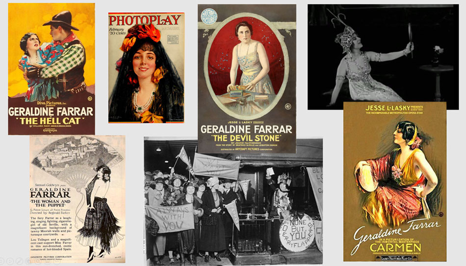 Farrar in her popular culture roles as seen in advertisements, postcards
