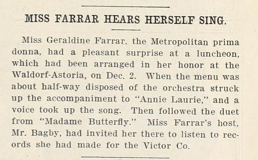 a 1913 Victor recording of Farrar singing Marguerite's aria the "Jewel