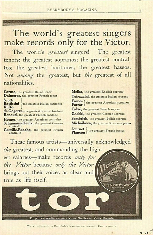of the Artists who made Records Exclusively for the Victor. From "Victor
