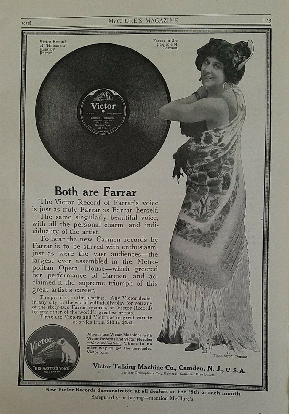 ad with Geraldine Farrar (7" x 9.75") 1911