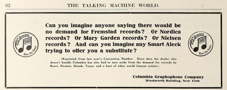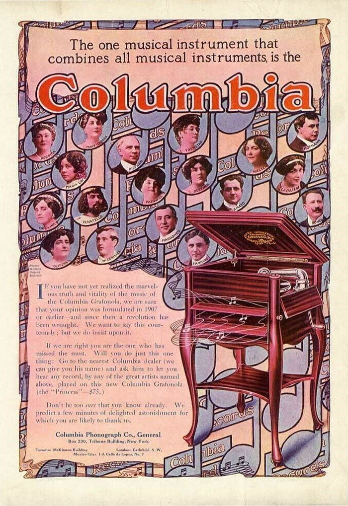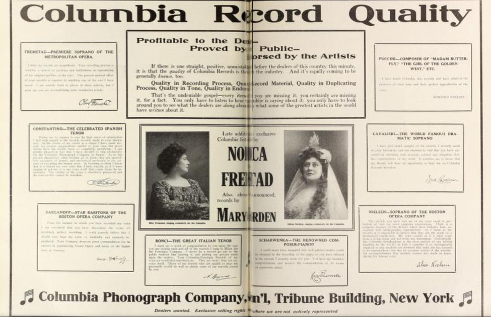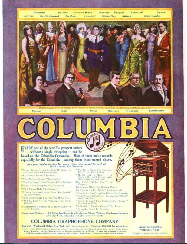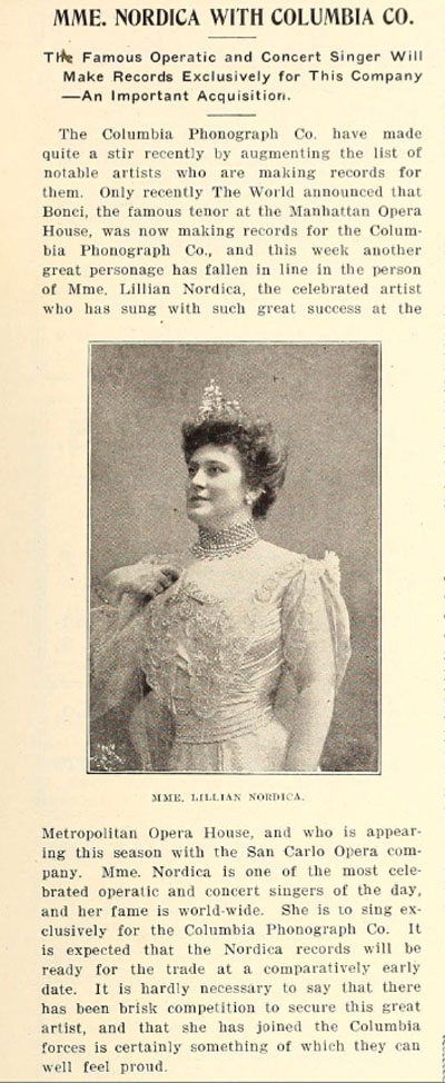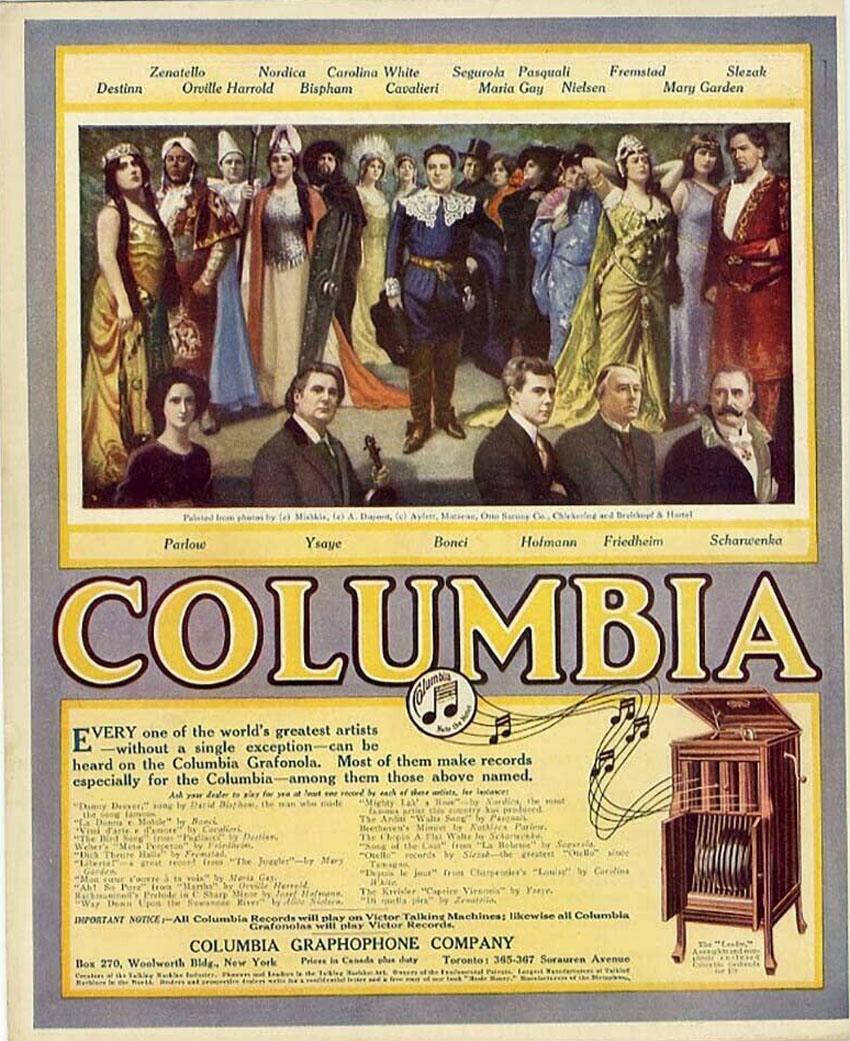 Columbia advertisement courtesy of The Nordica Memorial Association