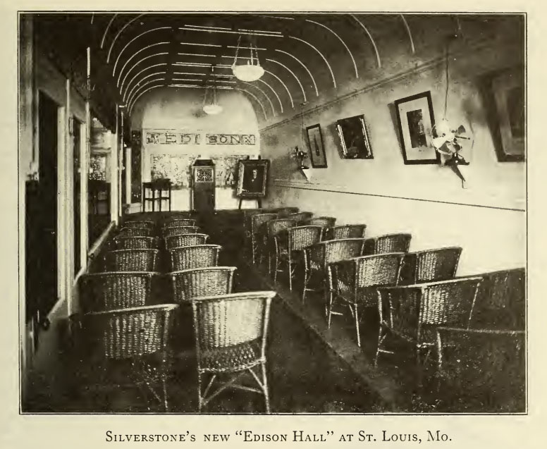 Silverstone Music Company's Concert Chamber "devoted exclusively to the exploitation of the Edison Diamond Disc." "This concert chamber is on the first floor and easy of access, besides five other spacy booths devoted to the demonstration of the Diamond."