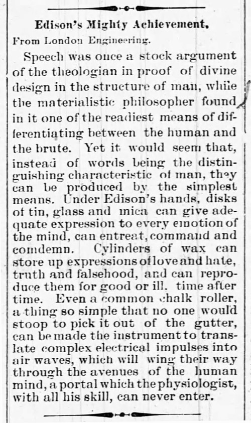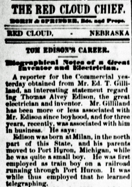 to Edison's invention reported by two small town Nebraska newspapers: