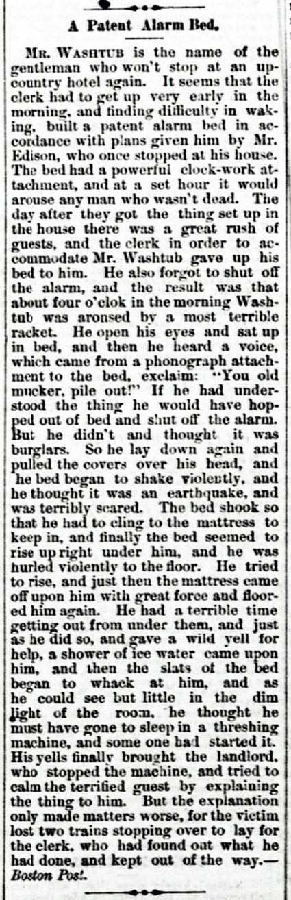 Alarm Bed with Phonograph attachment (supposedly built from "Edison's"
