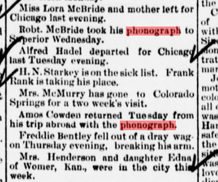 of phonograph 'concerts' in small towns where the phonograph was being