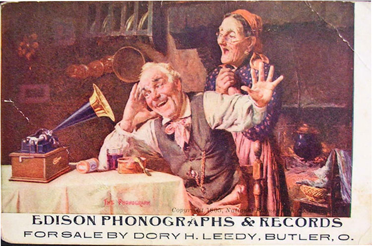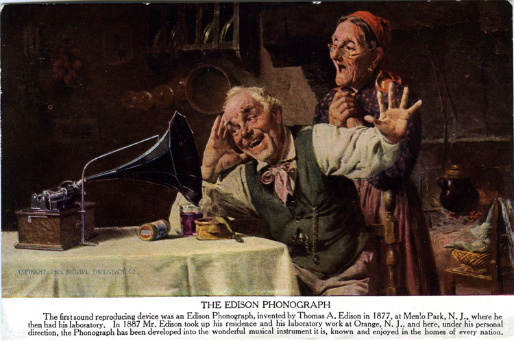 "The Phonograph," read the back of one of 800,000 Edison advertising post cards, "depicts the delighted amazement of an old couple upon hearing a Phonograph for the first time."