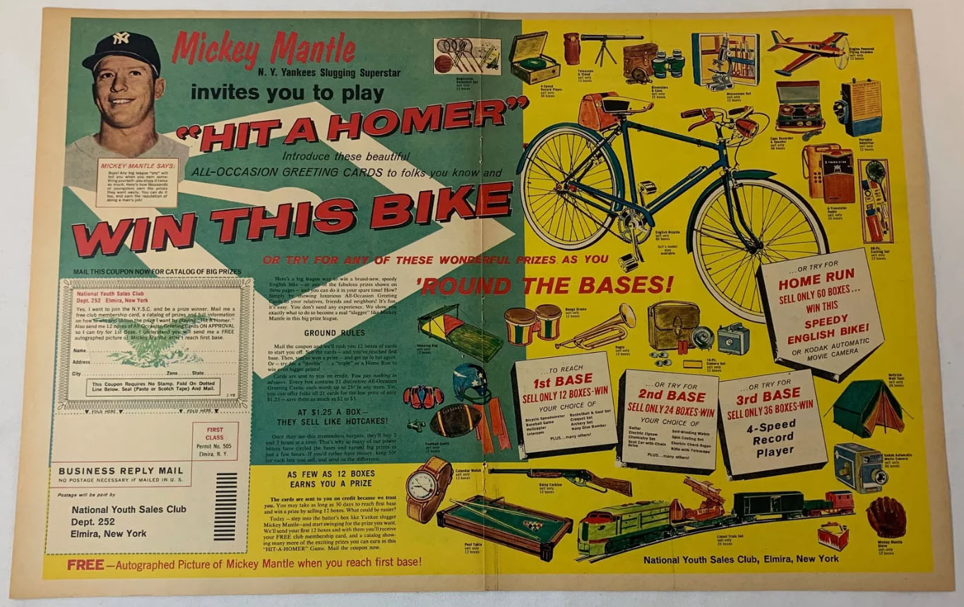 Mickey Mantle's promotion for the National Youth Sales Club to "Hit a Homer." 1963