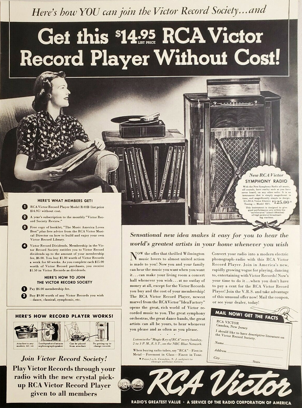 Receive a RCA Victor Record Player and Membership in the Victor Record Society, 1938