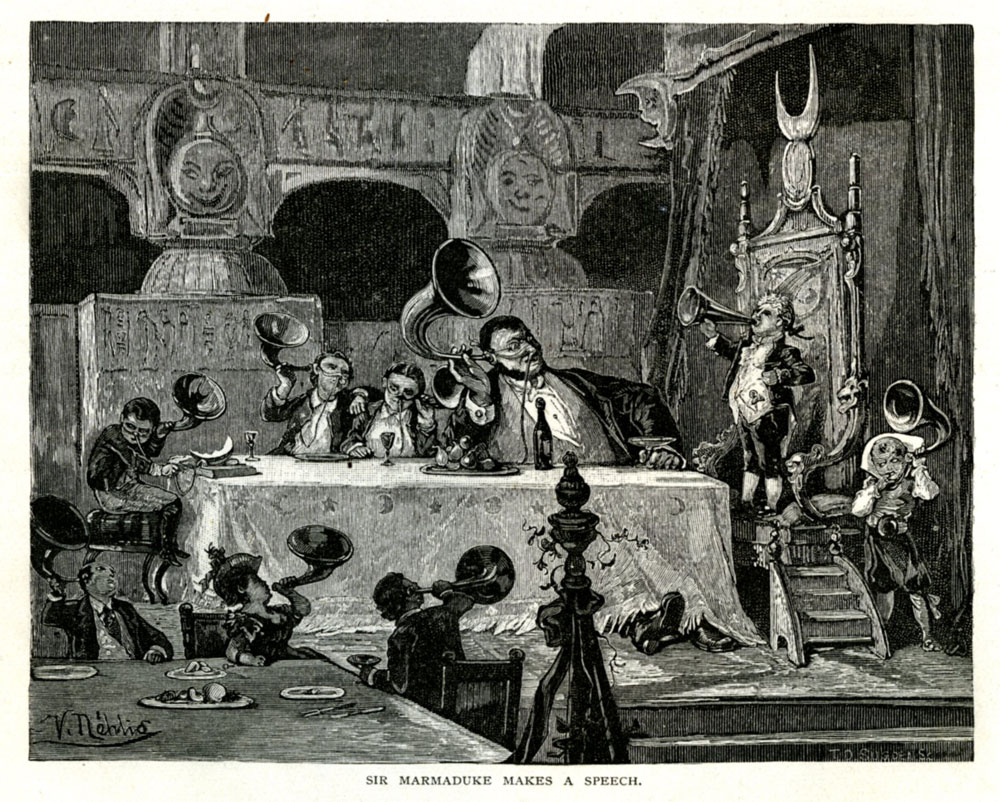 "To each of the guests a monstrous ear-trumpet is handed, with a megaphone attached..." p. 124 ibid.