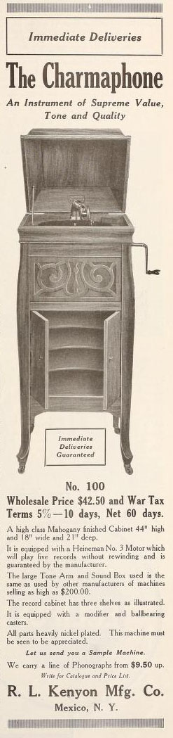 Charmaphone – R. L. Kenyon Manufacturing Company, 39 West 32nd Street, New York City, New York. November 15, 1918 TMW