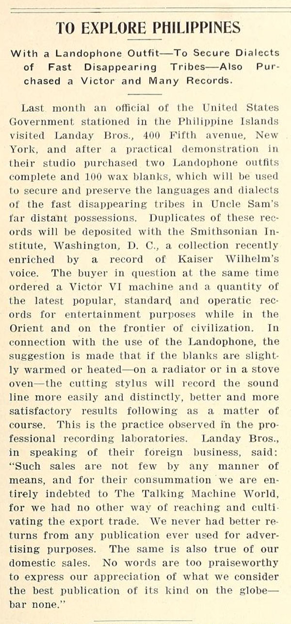 Dulcephone* – Record Album, London, England - The Talking Machine World, August 15, 1907 (FOTP)