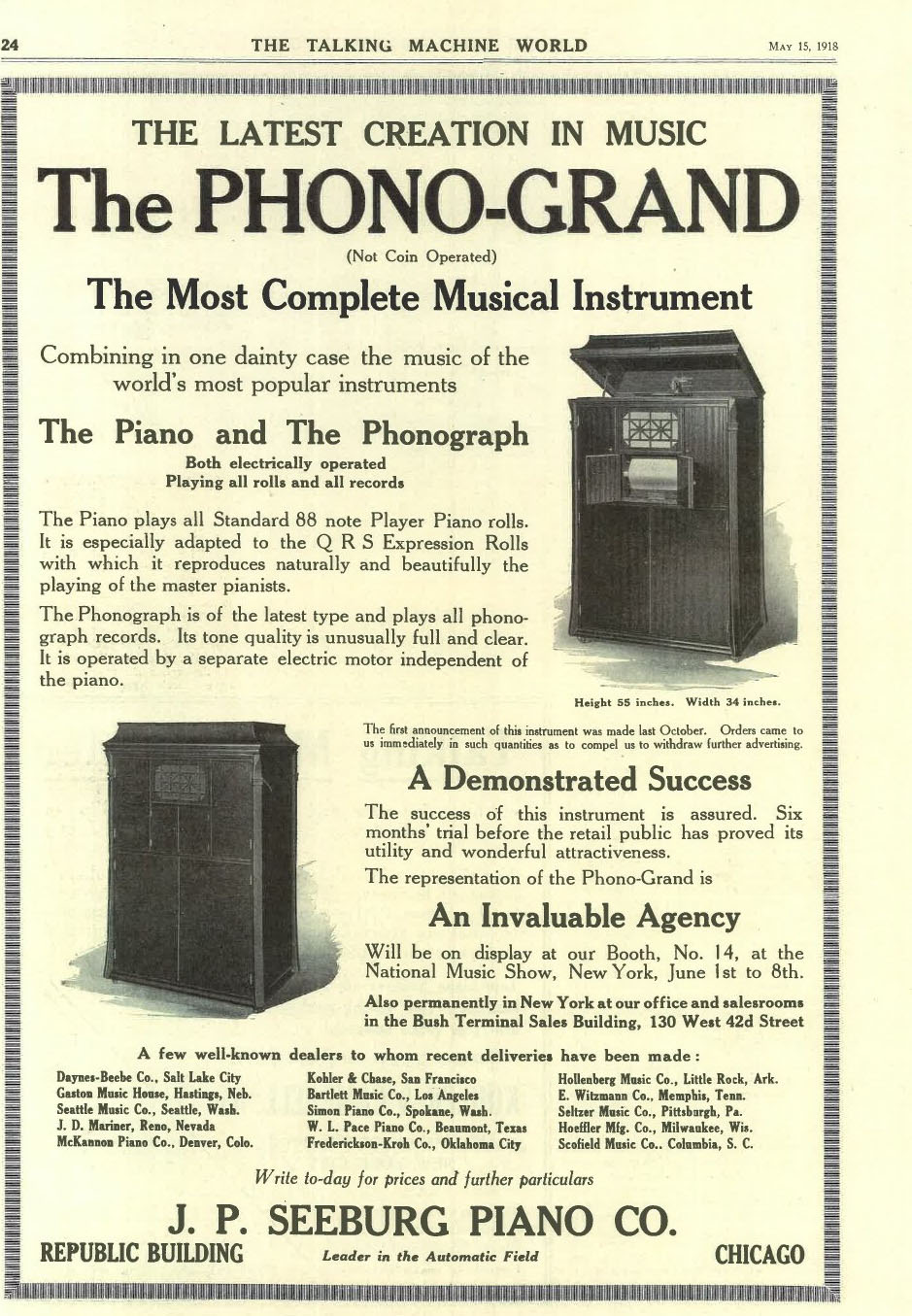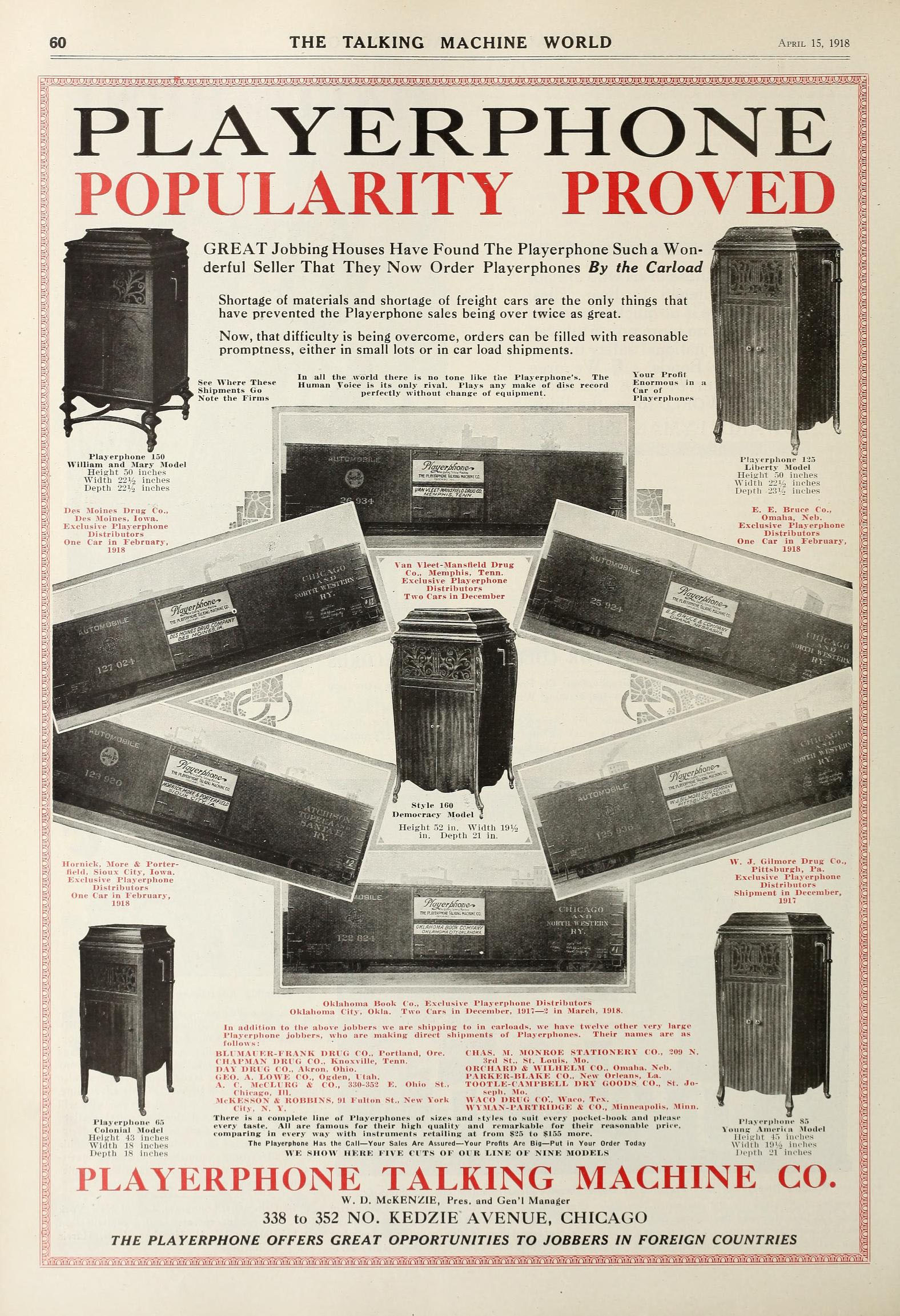 Playerphone – Playerphone Talking Machine Company, 802 Republic Building, Chicago, Illinois. March 1916. TMW (RJW)