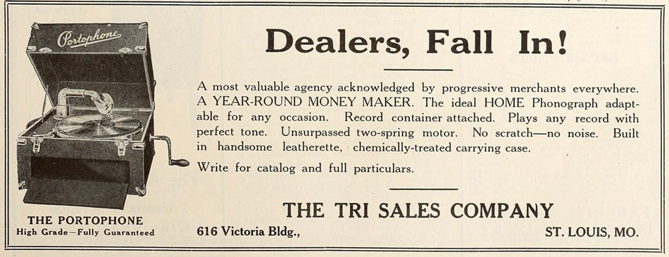 Portophone – The Tri Sales Company, 616 Victoria Building, St. Louis, Missouri. January 1920
