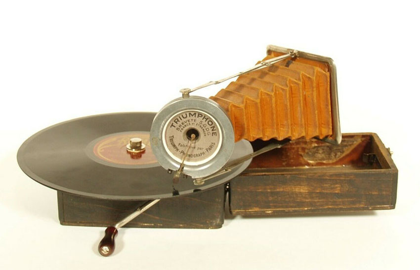 Triumphone – Cameraphone style portable made in Paris, France circa 1924. "Triumphone" Triumph - Phonograph - Paris (FOTP)