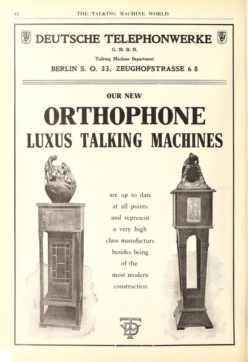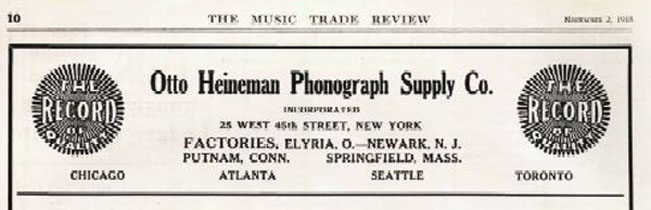 Vanophone – Otto Heineman Phonograph Supply Company, 25 West 45th Street, New York City, New York. May 1916 TMW - The Canadian Antique Phonograph Project notes that Toronto was one of Vanophone's manufacturing sites and an example is included of a Canadian Vanophone. (26)