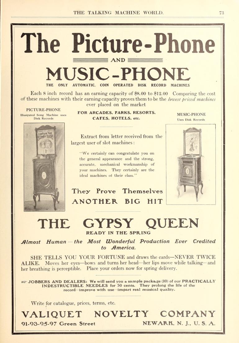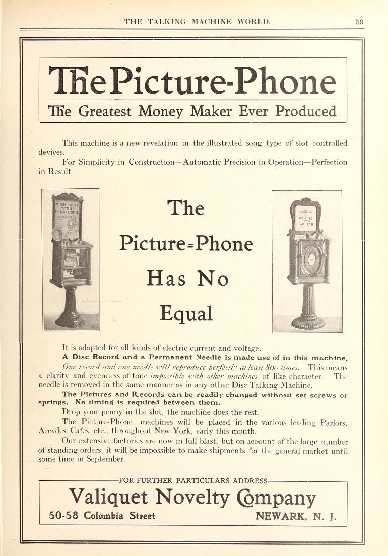 Picture-Phone — The Valiquet Novelty Company, 50-58 Columbia St., Newark, N.J. - TMW August 15, 1906 (FOTP)