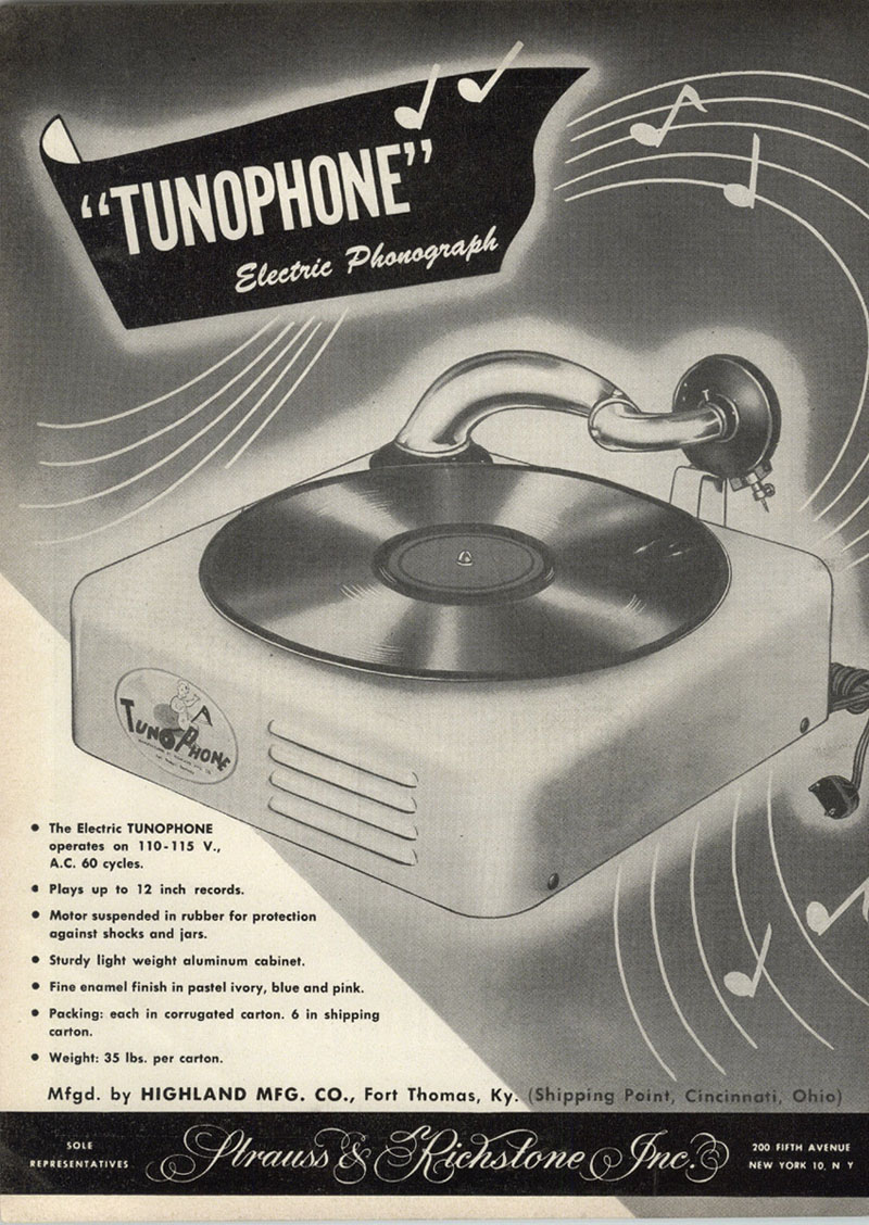 Tunophone – Highland Mfg. Co., Fort Thomas, Ky, Tunophone March 1948, Strauss & Richstone Inc, Playthings (FOTP)