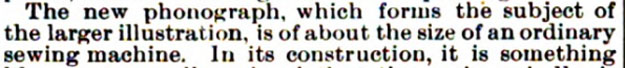 The new phonograph "is of about the size of a sewing machine."