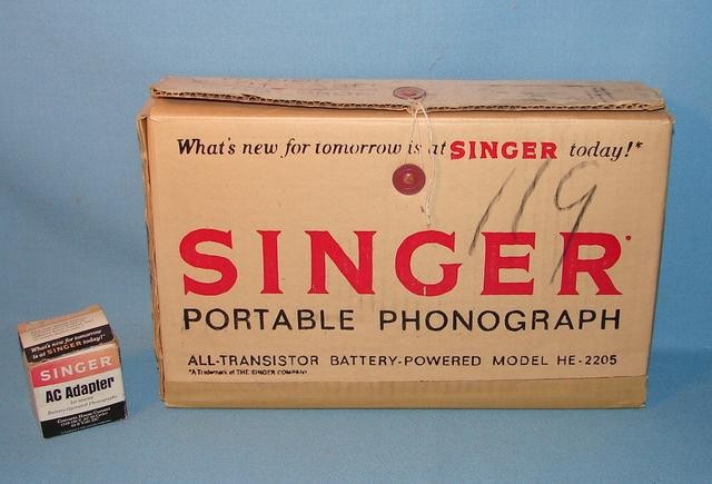 The Singer Sewing Machine Company made a battery operated Phonograph in 1968, The Singer Portable Record Player Model HE-2205 which played 45 & 33-1/3 RPM records using 4 D batteries.