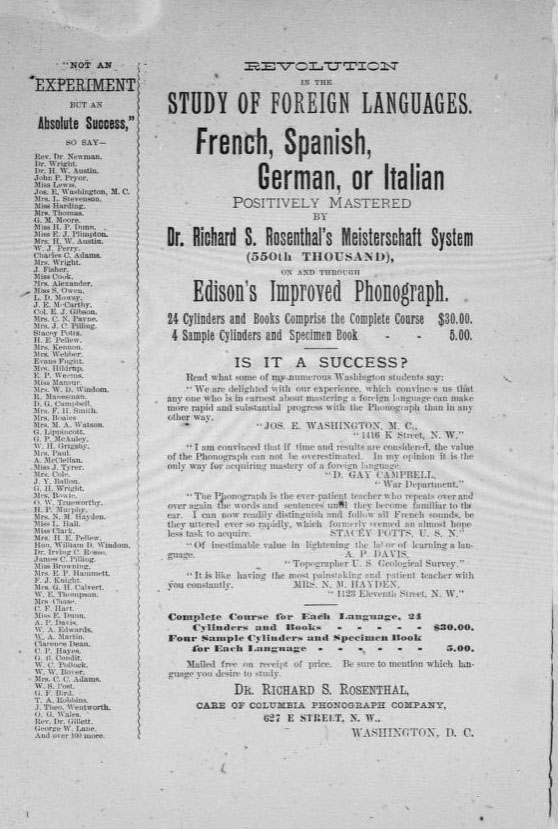 in 1897 was promoted as a 'French Teacher, German Teacher, Spanish