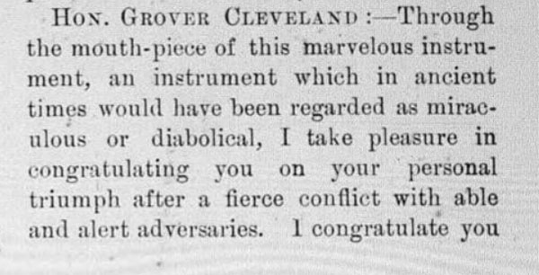 President Diaz of Mexico to Edison thanking him via a cylinder record
