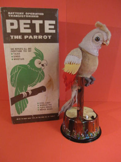 of Edison's tin-foil phonograph. The 1960 toy Pete the Parrot could