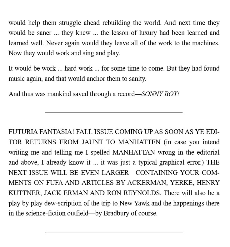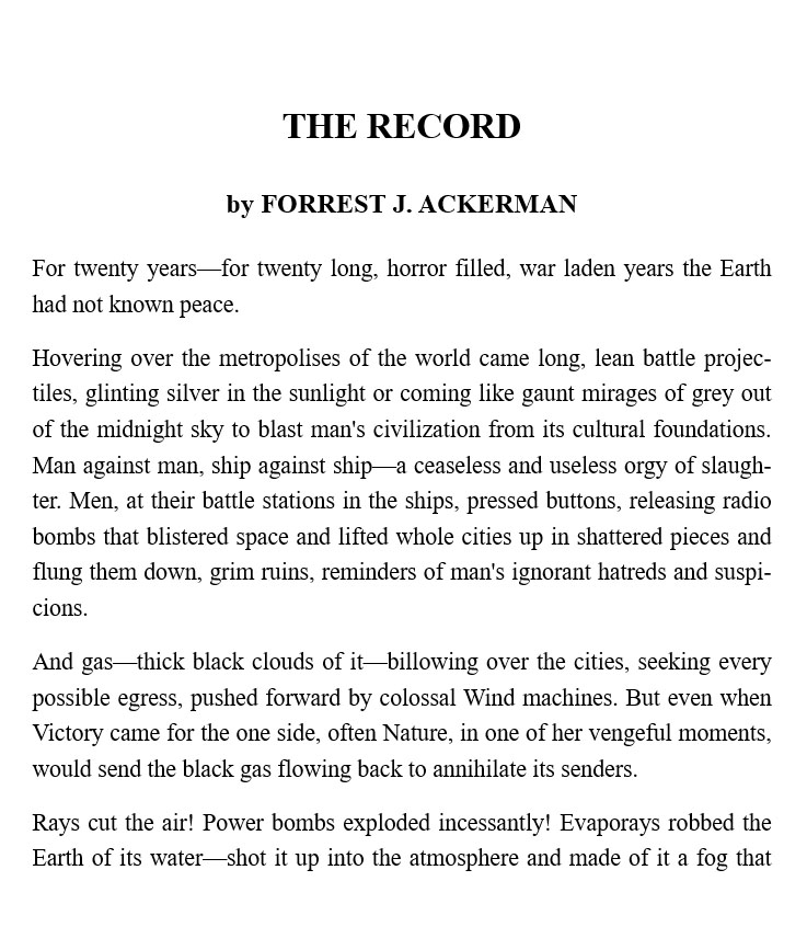 First Issue of Futuria Fantasia published by Ray Bradbury with story "The Record" by Forrest J. Ackerman
