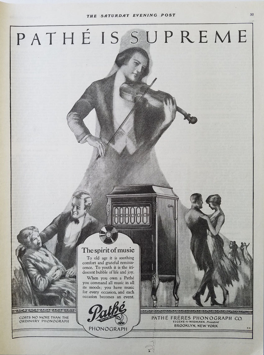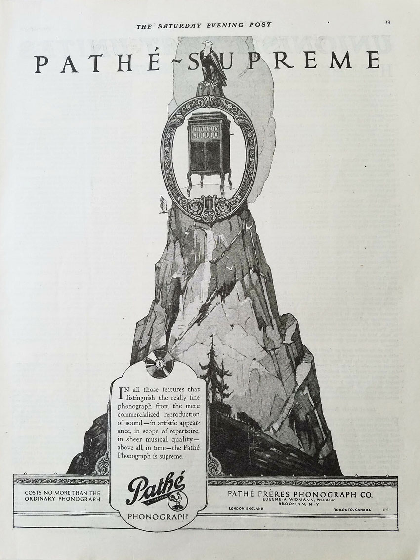 "Pathé is Supreme," The Saturday Evening Post, 1920. (Courtesy the-ad-store).
